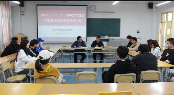 为认真贯彻落实教务处《关于开展2022-2023学年第学期期中教学自查的通知》精神,深入了解学生学习生活动态,进一步加强学风教风建设,112日下午,电信学院在江北校区一号教学楼1307教室召开学生座谈会。学院党总支副书记蔡正旺、副院长宋权华出席座谈会2020级至2022级各班共30余名学生代表参加会议。
