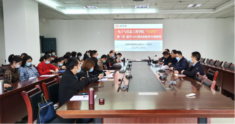 为了更好地推进2022版人才培养方案暨配套教学大纲的高质量修订,11月9日下午,电信学院组织开展第六期“燚讲堂”活动,邀请学校教务处副处长付争方教授做“基于OBE理念的教学大纲编写”专题讲座,学院领导班子成员、全体教职工参加此次活动。讲座由学院院长陈守满教授主持。