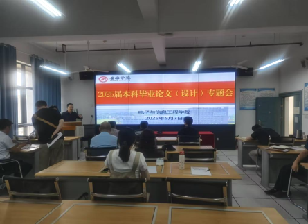 为进一步提高本科毕业论文(设计)质量,加强学术道德和学术规范建设,5月7日下午,电信学院在逸夫科技楼B602召开了2025届本科毕业论文(设计)工作专题会。学院领导班子、系(教研室)主任参加会议,会议由学院副院长宋权华主持。
