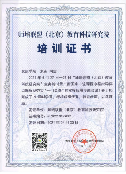 4月27日至4月29日,由师培联盟(北京)教育科技研究院主办的第二批国家一流课程申报指导专题会议在线上举行,电信学院派电子系教师朱燕和计算机系教师丁敏喆参加了本次会议。