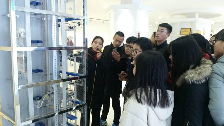 2018年12月12日,在电信学院应用物理系主任方小兵老师的组织下,应用物理学2018级一行32人赴普瑞达电梯公司参观学习。普瑞达公司领导对安康学院老师及同学们的来访表示热烈的欢迎,并安排了专业的讲解员带领大家进厂房,实地参观电梯的生产情况。解说员通过电梯模型向同学们介绍了电梯的结构、工作原理,并对电梯的主要部件分别做了模型展示。