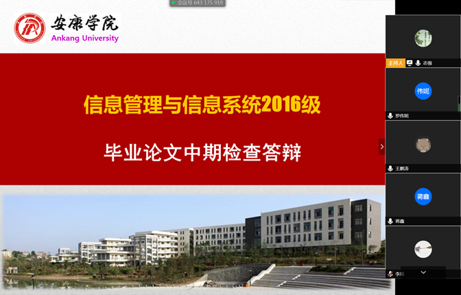 由于受新冠肺炎疫情影响,依据欧美日韩国产在线2020届毕业论文(设计)的总体工作安排,按照信息管理系毕业论文工作进度要求,确保2020届信息管理与信息系统专业毕业生的毕业论文(设计)工作不因疫情而受严重影响,督促检查学生毕业论文(设计)进展情况,信息管理系各答辩小组精心组织安排、提前测试腾讯会议线上答辩平台,于4月12日前圆满完成信息管理与信息系统专业2020届毕业论文(设计)中期检查工作。