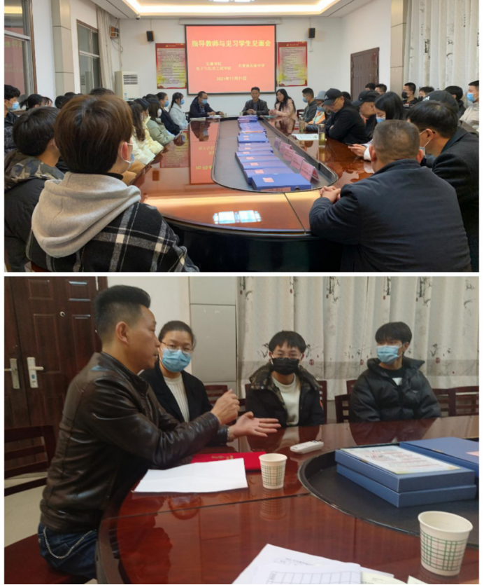 11月21日晚,石泉中学副校长戴尚勇老师带领全体学生参观了学校,详细介绍了学校的基本情况。随后,石泉中学副校长戴尚勇、陈平及相关指导老师和同学们召开了见面会,对本次的见习进行了详细安排,并明确了见习的内容和具体要求。会后,召开了学生和见习指导老师见面会,对见习的具体内容和见习过程做了充分沟通和交流。