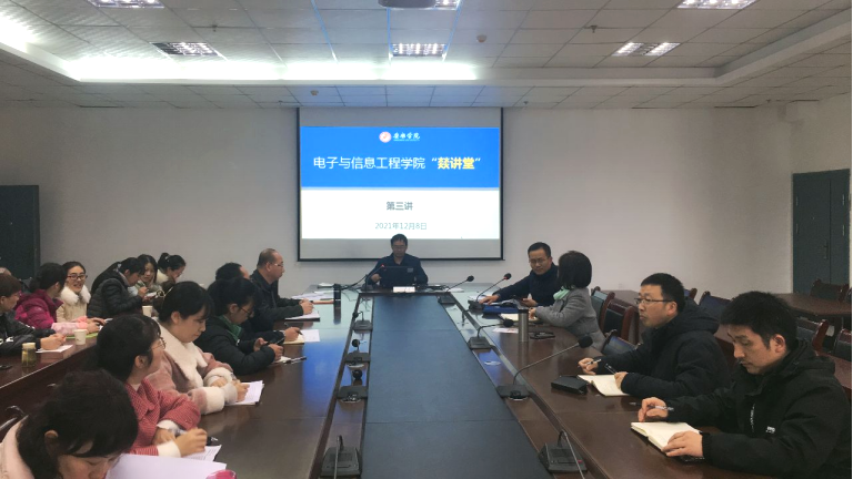 陈院长在讲座中全面阐述了普通高等学校本科教育教学审核评估的背景,解读了审核评估的相关政策及目的意义、指导思想、基本原则、评估对象、周期与分类等。他从思政教育、人才培养方案、实践教学、卓越人才培养、创新创业教育、设施条件、资源建设、教学能力、教师发展、学业成绩及综合素质等十个方面对电信学院在审核评估中的重点工作做了详细讲解。陈院长指出,审核评估要达到四个“度”:适应度、保障度、有效度和满意度,并要求全院教职工要高度重视此项工作,要主动作为、早作准备,要对照评估标准全面查摆本科教学工作中存在的问题与不足,加快整改建设的进程。