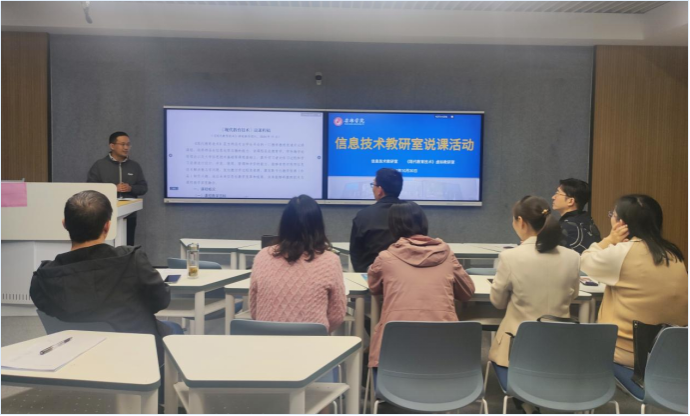 为进一步提高教师教学技能,促进教学方式转变,整体推动教育教学质量的提升,根据学校文件要求以及学院教学工作安排,信息技术教研室开展“专任教师磨课、课程负责人说课”的教研活动。本次活动由李宝主持,邀请了学院教学副院长宋权华、院级教学督导陈颖博进行现场评课议课,教研室全体教师积极参加。