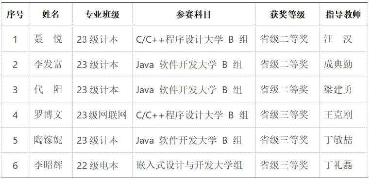 经过激烈比拼,我校学子表现优异,最终斩获省级二等奖3项、三等奖3项的佳绩。此次竞赛不仅为我校学生提供了与省内高校交流学习的宝贵机会,也进一步激发了他们的创新意识和实践热情。未来,电信学院将继续以学科竞赛为抓手,深化创新创业教育改革,推动专业建设与行业需求紧密对接,为培养高素质应用型人才提供有力支撑。