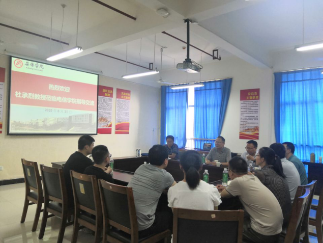 讲座结束后,在逸夫科技楼B702,杜承烈教授和电信学院部分教师进行了座谈。首先,院长陈守满对电信学院的学院概况进行了介绍,副院长王克刚对学院的科研现状、方向、成果进行了介绍。然后,杜承烈教授结合自己学习和工作经历,分别从“高校教师为什么要做科研?如何选取科研方向?怎么做科研?”3个方面进行了分享。在谈及电信学院科研建设方面,杜教授建议以安康学院办学定位和地方发展特色为出发点,结合学院各学科科研现状,构建一个应用为主、带应用场景的系统,对学院各研究方向进行整合,打造团队,以此促进科研建设和发展。最后,还专门针对青年教师深造提升、专业学生实际培养过程中的一些实际问题等和老师们进行了深入交流指导。