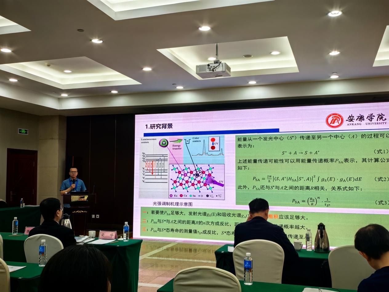 陈浩博士在会上作了《稀土掺杂锡酸钙光强调控性能优化及应用研究》报告。介绍了采用稀土离子掺杂改性的方法,借助能量传递理论,研究光致变色对下转换发光、上转换发光及量子裁剪发光的调控作用,提出基于光致变色、下转换发光光强调制、上转换发光光强调制的多模式UV辐射剂量复合探测新方法。