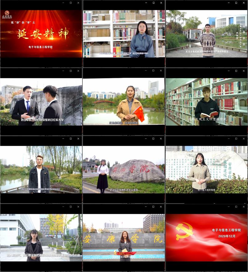 该活动由组织策划、交流研讨、脚本撰写、视频制作四个环节组成,从5月组织策划,经历了暑期社会实践活动资料搜集整理,教工和学生党支部主题讨论、脚本设计、宣讲人员遴选、 “延安精神”宣讲系列微视频制作等环节,到12月视频杀青前后历时7个多月,电信学院40余名师生参与。