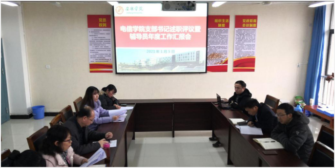 2021年1月5日,电信学院党总支在科技楼B702召开了2020年度党支部书记述职评议暨辅导员年度工作考核会,学院党总支委员会全体成员、各支部书记及支委、全体辅导员参加会议。