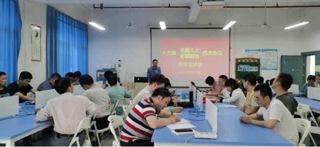 5月19日下午,欧美日韩国产在线在科技楼B602召开十三届全国人大四次会议、十三届全国政协四次会议精神宣讲会。学院党总支副书记、院长陈守满主持学习会议,电信学院全体教职工参加宣讲会。