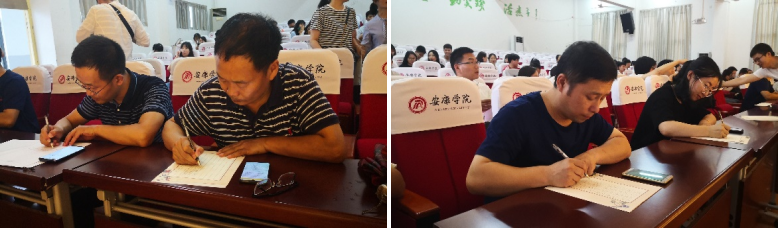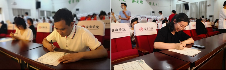 最后,党总支和学院工会组织教师开展了“学党史 书情怀”硬笔书法展示活动。书写现场,老师们认真专注,把对党的热爱和学习党史的热情融入到一笔一顿中,展现出电信学院教师扎实的基本功、昂扬向上的精神状态和爱党爱国的情怀。