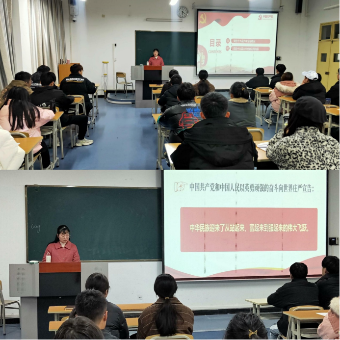 程晓梅着重讲了两部分内容:一是党的十九届六中全会会议介绍,让学生了解会议的基本概况和主要议程;二是党的十九届六中全会公报内容,围绕三个“需要”、四个“伟大成就”、五大“历史意义”、十个“坚持”、三方面“要求”内容分别讲述了“为何要总结党的百年奋斗重大成就和历史经验”、“中国共产党百年奋斗历程”、“中国共产党百年奋斗的历史意义和宝贵经验”、“十九届六中全会要求”。