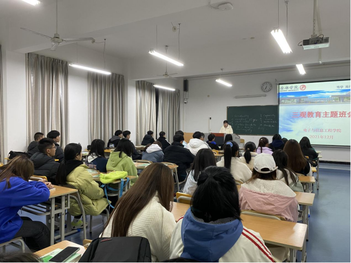 为加强对大学生的思想政治教育,尤其是信念教育,使当代大学生树立正确的人生观、价值观和世界观,引导学生增强“三爱”意识,热爱共产党、热爱祖国、热爱社会主义,电信学院秉着“育人先育德,育德先育心,先成人后成才”的德育理念,辅导员先后组织各班开展“三观教育”主题班会。