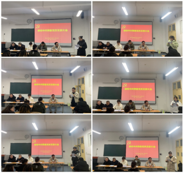 会议严格按照党组织接收中共预备党员程序进行,首先由拟接收为中共预备党员同志宣读《入党志愿书》,并向组织汇报自身对党的认识、入党动机、个人经历以及在校表现。随后,入党介绍人宣读介绍人意见,接着由石纭昊宣读支部报告审查意见并提交支部大会酝酿讨论。在讨论期间,大家分别就六位同志在政治、工作、学习、生活等方面的表现进行了充分讨论,并发表了意见。经到会正式党员投票表决,支部大会同意接收王嘉慧等六位同志为中共中央预备党员。党支部书记李章雨表示,希望新发展的党员可以继续努力,不忘初心,牢记使命,坚持勤奋学习,不断提高政治理论水平,自觉遵守党的纪律,维护党的团结统一,永葆共产党人的政治本色。