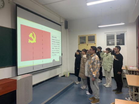 大会最后,由宣传委员蒋帅带领全体党员重温入党誓词,现场响起了阵阵激昂的宣誓声,每位党员同志都用发自内心的声音抒发对党忠诚的决心,面对着党旗,大家接受了一次身心的特殊洗礼。本次入党宣誓仪式有助于广大学生党员铭记入党誓词,增强党员自豪感、荣誉感,在今后的学习生活中自觉担负起光荣的责任和使命,为党的伟大事业做出应有的贡献。