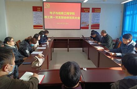 2021年12月29日下午,电信学院教工第一党支部在逸夫科技楼B702召开党员大会,会议主要讨论宋昌伟、王涛二位同志能否转为中共正式党员的事宜。本次会议应到会党员20人,因事请假2人,实到会18人,符合规定人数,大会由支部书记赵志强主持。