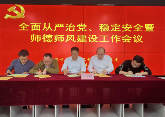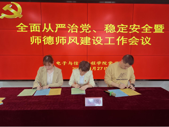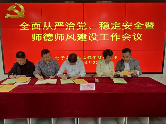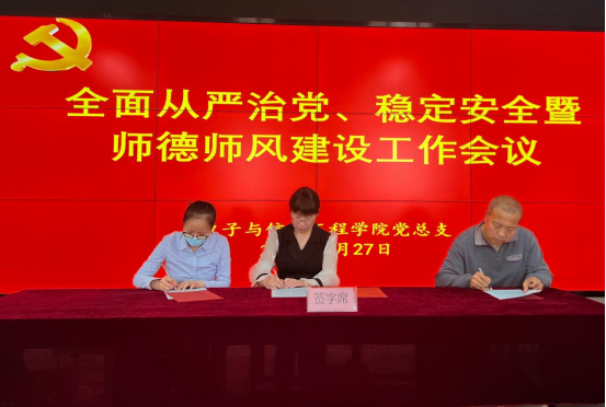 电信学院院长陈守满、党总支书记于咏梅分别与领导班子成员王克刚、宋权华、蔡正旺签订全面从严治党、稳定安全工作责任书