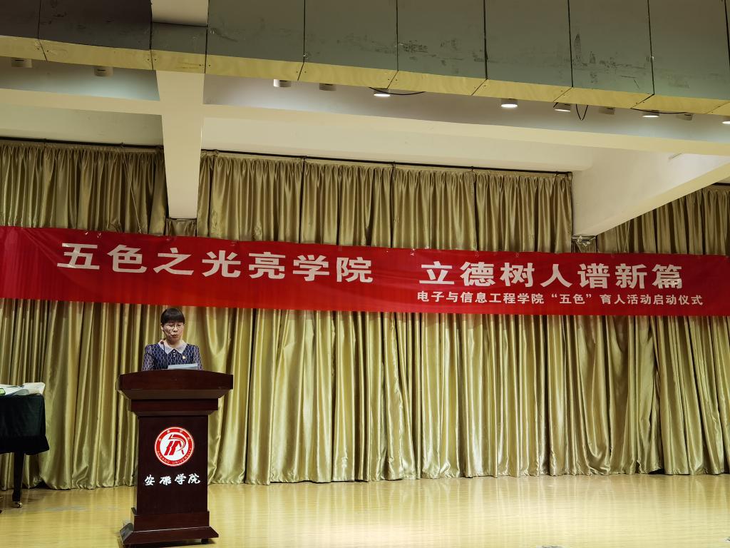 5月26日,电信学院在江北校区1401举办“五色”育人实践教育活动启动仪式,安康学院党委副书记胡波、副校长张东红、党委组织部部长屈险峰、电信学院领导班子成员出席会议,电信学院全体无课教师、学生党员、入党积极分子、学生干部和学生代表参加会议,本次会议由电信学院党总支书记于咏梅主持。