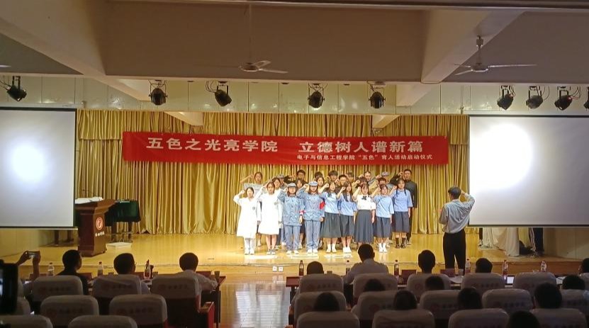 启动会上,全体与会人员观看了电信学院学生展演的情景剧《百年大业》。穿岁月峰头,伴历史云烟,中国共产主义青年团百年来风雨同舟路,团旗耀征程。一代又一代青年在党的领导下,积极投身中国革命、建设和改革的伟大事业,谱写了一曲曲壮丽的青春之歌。电信学院学生以此情景剧《百年大业》庆祝建团一百年,青春献礼二十大,并集体宣誓“五色”实践教育活动誓词。