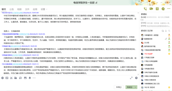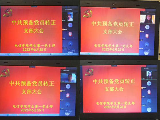 6月25日上午,电信学院学生第一党支部采用线上腾讯会议的形式召开了中共预备党员转正党员大会,会议主要讨论了郭伊敏等15名中共预备党员的转正事宜。电信学院学生第一党支部书记程晓梅,党总支组织委员成英丽,支部组织(纪检)委员张宇航,宣传(统战)委员王心悦,支部全体党员参加了本次会议。会议由程晓梅主持。