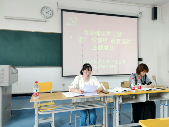6月22日下午,电信学院学生第一党支部在江北校区1321教室召开党员大会, 党支部书记程晓梅为全体党员、部分发展对象和入党积极分子讲了一堂别开生面的党课。辅导员吕以宁全程听课。