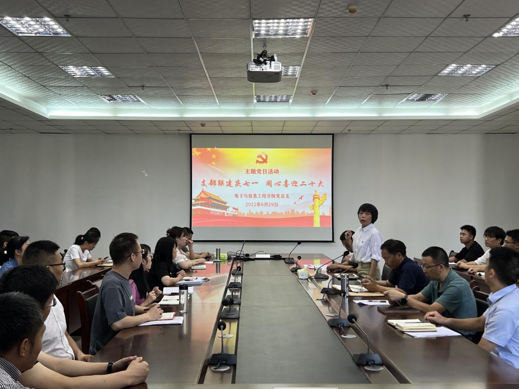 为庆祝中国共产党成立101年,喜迎党的二十大胜利召开,欧美日韩国产在线于6月29日在逸夫科技楼9楼会议室开展“支部联建庆七一 同心喜迎二十大”主题党日活动。安康学院副校长张东红、电信学院领导班子成员、电信学院全体教职工、无课学生党员、部分入党积极分子参加本次会议,会议由电信学院党总支书记于咏梅主持。