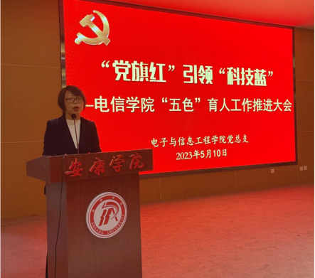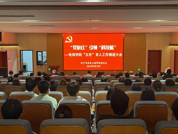 为深入学习贯彻党的二十大精神,推进学习贯彻习近平新时代中国特色社会主义思想主题教育走深走实,坚持立德树人根本任务,认真落实学校“五大行动”“五促融合”和“双促双提升”总要求,以“五色”育人模式的实践与创新,助推学院高质量发展。电信学院于5月10日,在江北图书馆报告厅召开“五色”育人工作推进大会。电信学院党总支书记于咏梅、副院长王克刚、宋权华、全体教职工及学生党员、发展对象、积极分子参加此次会议。本次会议由于咏梅主持。