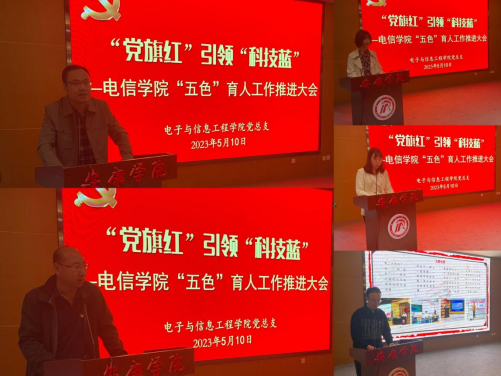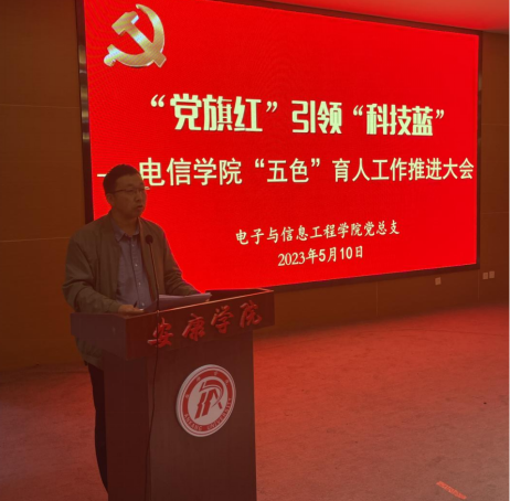 王克刚宣读了《电信学院五色育人教育实践工作细化安排表》,明确了相关工作的主体责任。他指出,“五色”育人教育实践活动,形式多样、内涵丰富,以学科专业和第二课堂特色活动提高学生思想政治理论水平与实践动手能力。电信学院积极探索具有电信学院特色的“五色”育人模式,充分表明了学院认真贯彻落实立德树人根本任务,坚持党的领导,培育堪当民族复兴大任的时代新人的立场。