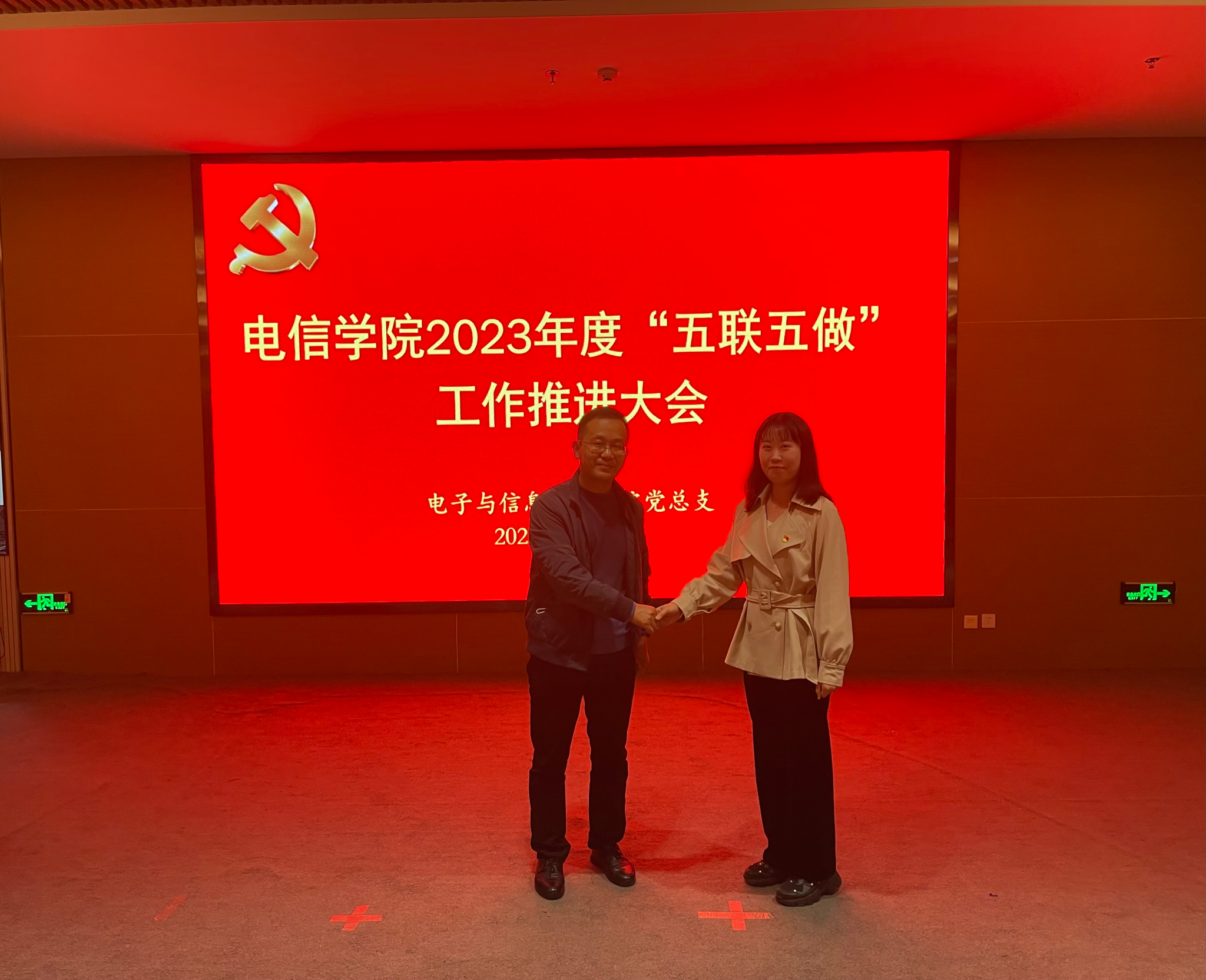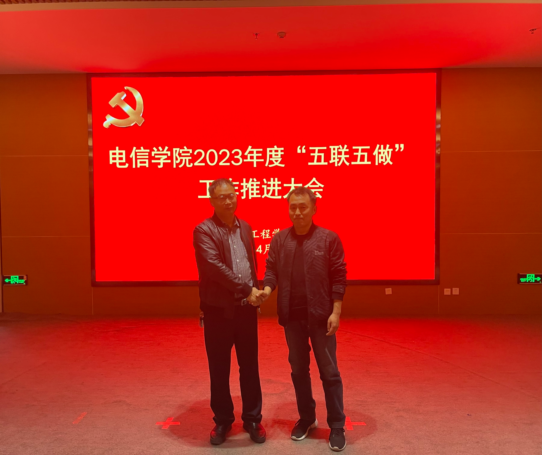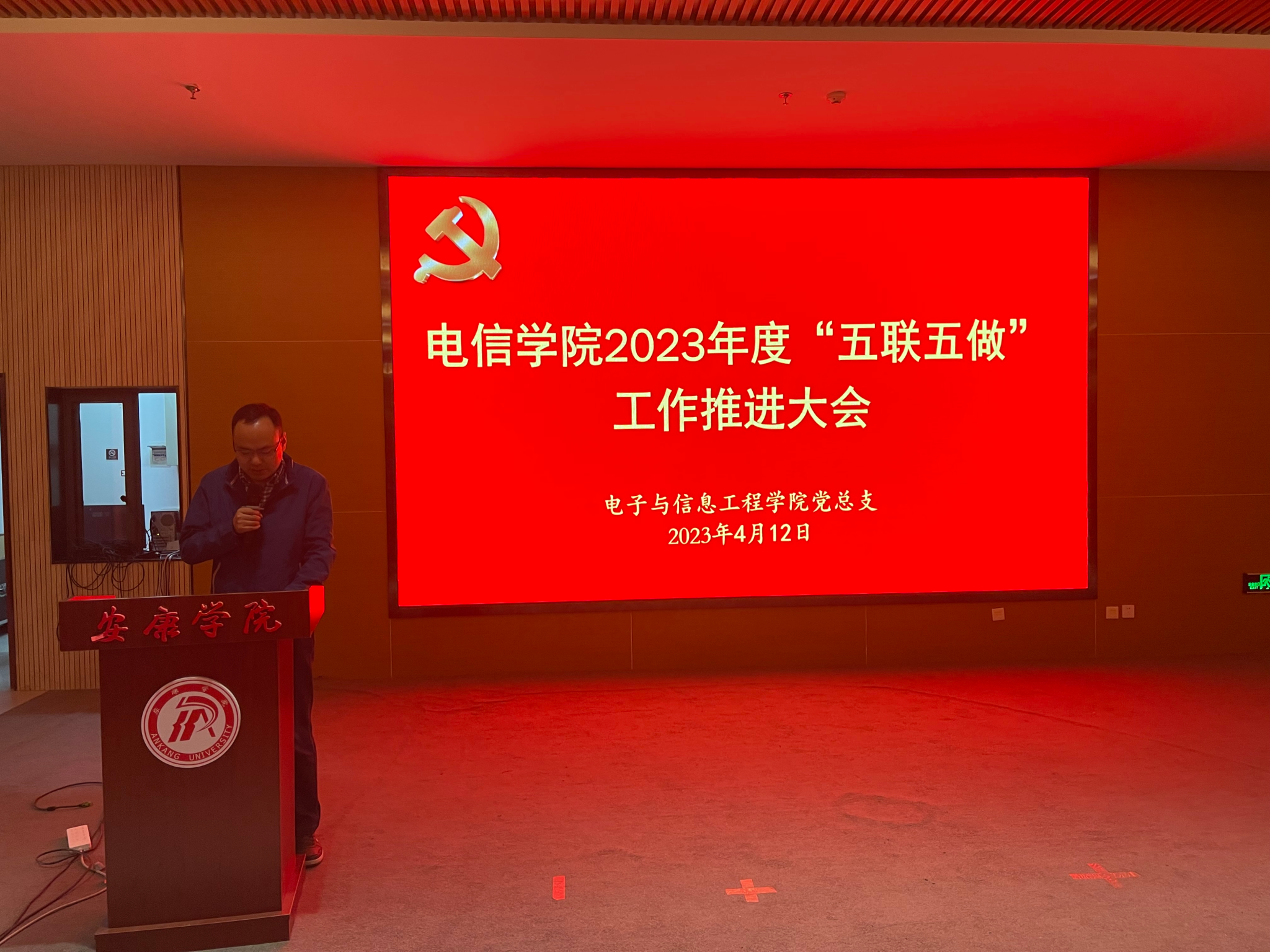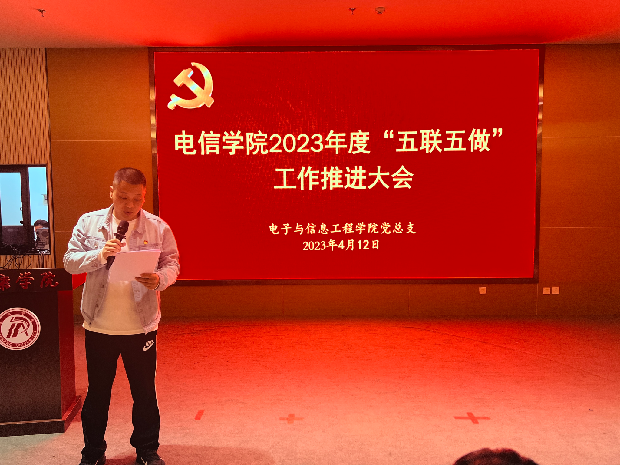 为全面贯彻党的二十大精神,深入推进新时代党的建设新的伟大工程,聚焦“为党育人、为国育才”,紧扣立德树人根本任务,落实标杆党总支建设要求,紧紧围绕学校和学院中心工作,充分发挥院系党组织政治功能,将党建和思想政治工作融入育人全过程,以高质量党建引领学院高质量发展。4月12日下午,电信学院党总支在江北校区图书馆报告厅召开2023年度“五联五做”工作推进会,电信学院全体教职工、学生党员和入党积极分子参加会议。本次会议由党总支书记于咏梅主持。