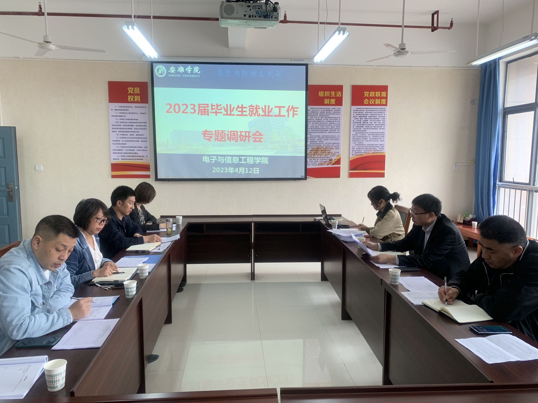 为进一步做好2023届毕业生就业工作,促进毕业生更充分、更高质量就业,贯彻落实国家、陕西省和安康学院有关加强高校毕业生就业工作的文件精神,4月13日上午,党委委员、副校长张东红,招就处副处长程国栋,校友科科长张远秀莅临欧美日韩国产在线调研2023届毕业生就业工作。电信学院党总支书记于咏梅、党总支副书记蔡正旺、学工办主任石纭昊以及毕业班辅导员李章雨、吕以宁参加会议。会议由于咏梅主持。