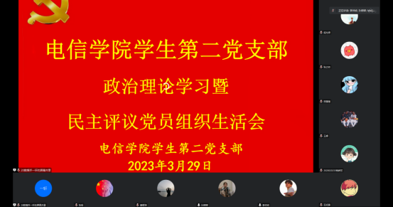 为切实增强基层党组织政治功能、组织功能严格党员教育管理,2023年3月30日晚上19:00,根据《中共安康学院委员会关于召开2022年度基层党组织组织生活会和开展民主评议党员工作的通知》的相关要求,电信学院学生第二党支部召开2022年度组织生活会,开展民主评议党员工作。会议由支部书记李章雨主持,支部全体党员参加会议。