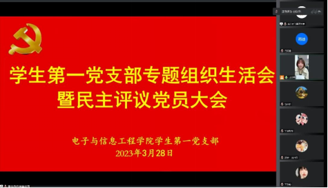 根据中共安康学院委员会《关于召开2022年度基层党组织组织生活会和开展民主评议党员工作的通知》要求,3月28日晚电信学院学生第一党支部在腾讯会议平台召开“学生第一党支部2022年度组织生活会暨民主评议党员大会”。全体党员参加会议,会议由支部书记吕以宁主持。