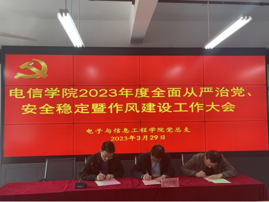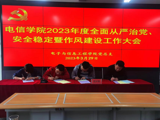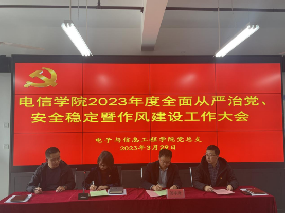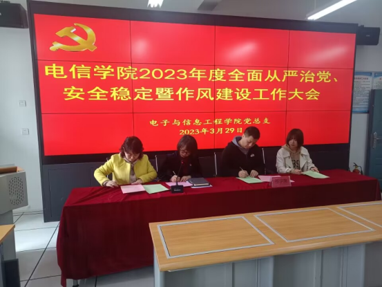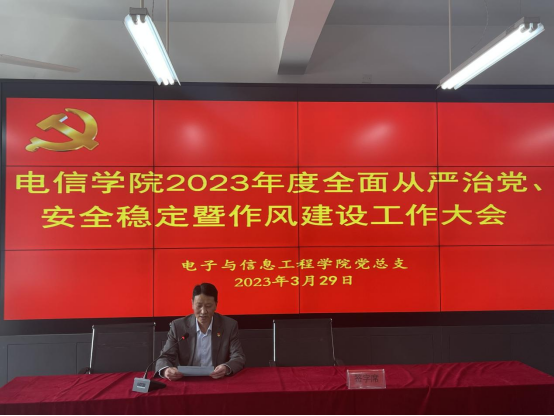 为深入贯彻落实党的二十大精神和全国“两会”精神,深入贯彻落实二十届中央纪委二次全会精神和陕西省纪委十四届二次全会精神,深入贯彻落实中省和学校党委全面从严治党工作会议精神,3月29日下午,电信学院在江北校区逸夫科技楼B602召开全面从严治党、安全稳定暨作风建设工作大会,电信学院全体教职工参加,会议由党总支书记于咏梅主持。