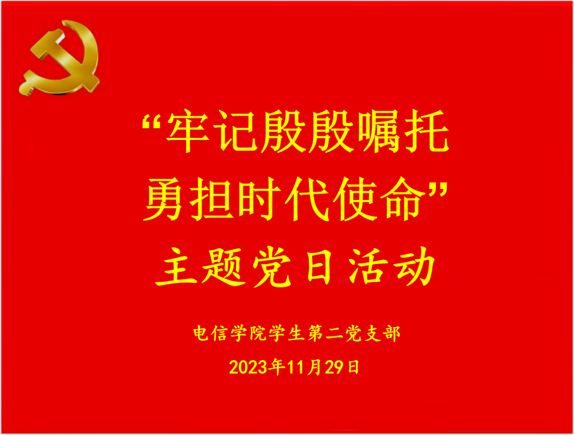 11月29日,电信学院学生第二党支部开展 “牢记殷殷嘱托,勇担时代使命”线上主题党日活动暨支部书记讲党课。会议由第二支部书记李章雨主持,学生第二党支部全体党员参加活动。
