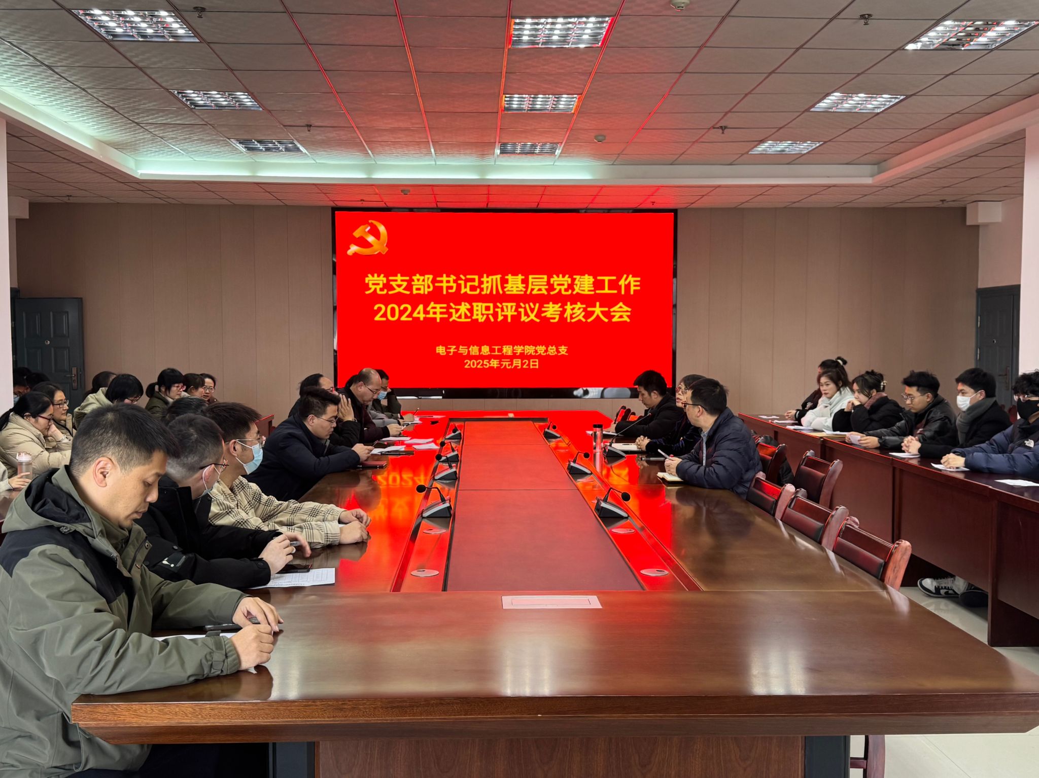 根据《关于开展2024年基层党建述职评议考核工作的通知》(校党发〔2024〕118号)文件精神,2025年1月2日,欧美日韩国产在线党总支在逸夫科技楼9楼会议室,召开党支部书记抓基层党建工作2024年述职评议考核大会。电信学院党总支委员、各党支部书记出席会议,电信学院全体党员参加此次会议。本次会议由党总支书记于咏梅主持。