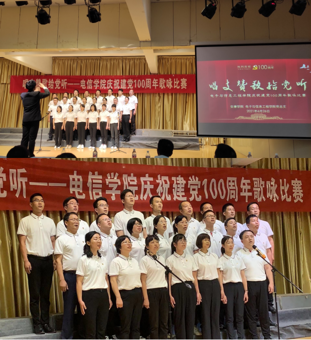 为庆祝建党100周年,6月26日,电信学院工会举办了建党100周年文体活动,通过“唱支赞歌给党听”、“学党史硬笔书法展示”两项活动内容,庆祝中国共产党成立100周年。
