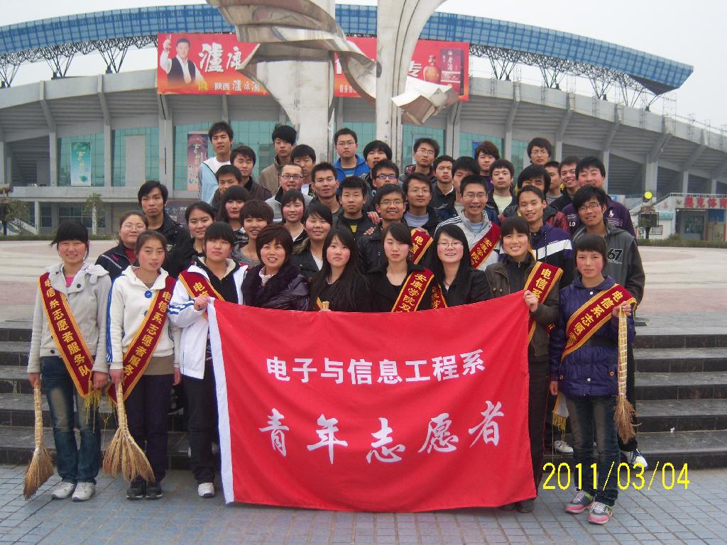 为弘扬雷锋精神,3月4日电子与信息工程系10级电子信息工程1班46名学生在辅导员成英丽老师的带领下,到安康市防洪堤坝进行义务清扫活动。