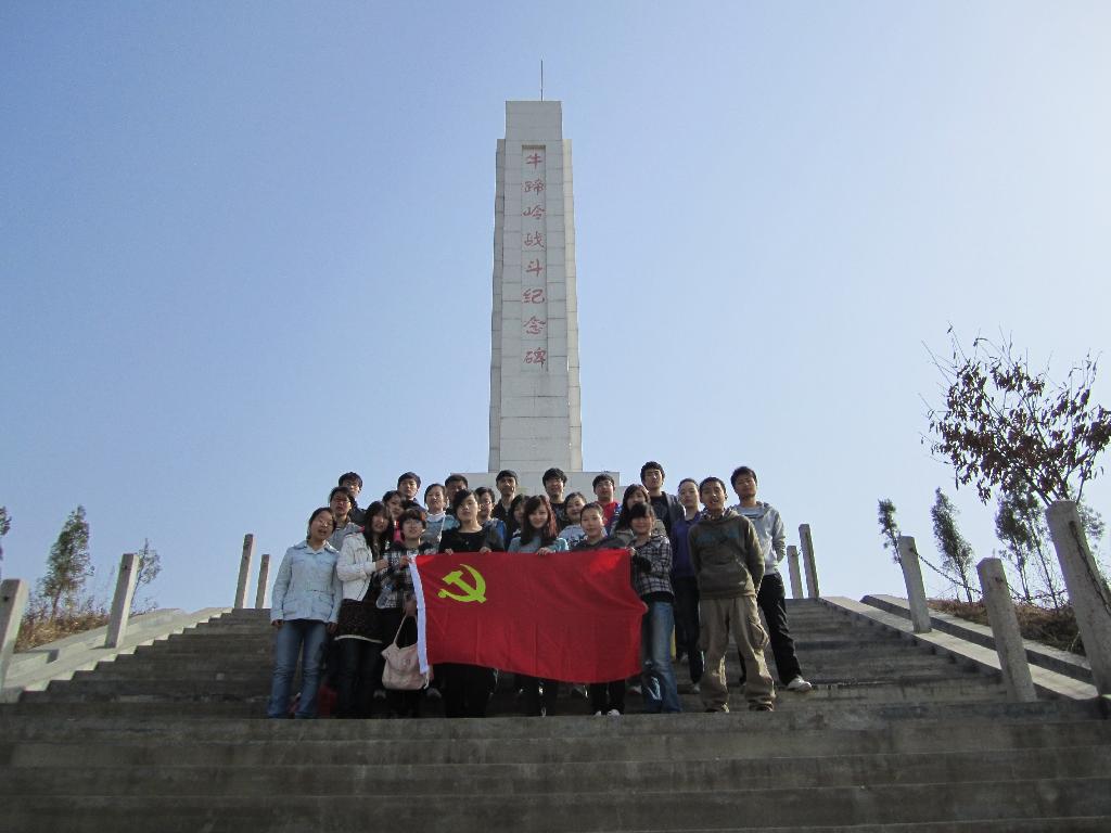 大家经过三个多小时的艰苦步行,来到牛蹄岭革命烈士纪念碑前。学生支部书记石纭昊老师为大家讲解了安康解放的简况和烈士们的英雄事迹。之后进行了党员民主评议,同学们觉得在烈士纪念碑前的评议显的更有意义。