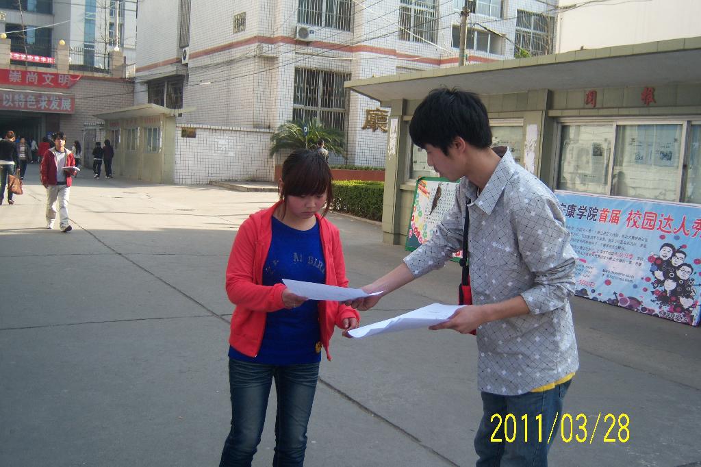 3月22日是第十九个“世界水日”,3月22日至3月28日是宣传节水意识的中国水周,为了充分唤起同学们的节水意识,3月28日电子与信息工程系团总支在校园内举行了以“纪念世界水日,珍惜生命之源”为主题的节水宣传活动。此次活动增强了我院大学生的水忧患意识,宣传了人与自然和谐相处的理念。