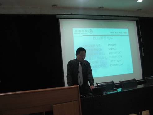 10月31日晚,电信系在一号教学楼六楼报告厅为2011级新生举行安全教育知识讲座。