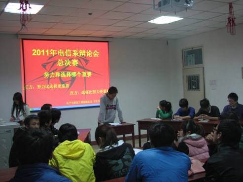 10月27日晚,电子信息工程系团总支在1429室举行安康学院2011年金雀杯精英辩论赛系内选拔赛决赛。