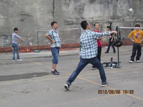 为庆祝“五四”青年节,安康学院电子与信息工程系2010、2011级计算机科学与技术专业学生于2012年5月5日上午,在学院南操场举行了球类比赛活动。学办副主任石纭昊、辅导员王贵新参加了本次活动。