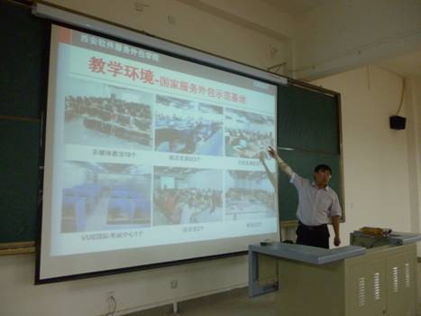 6月8日晚,西安软件外包学院在1301教室为我系2010级学生举行主题为“当前就业形势与如何就业”的讲座。西安软件外包学院的市场部经理苏中魁给同学们分析了2013年的就业形势,针对电子信息工程专业和计算机科学技术专业的就业方向做了详细的阐述。讲座使同学们认识了到目前的就业形势,并为同学们正确就业指明了方向。