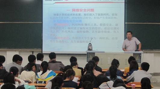 讲座中, 张峰老师从高校安全教育案例着手,围绕交通安全、人身财产安全、以及怎样提高大学生的安全意识等几个方面依次展开讲解。用生动的案例向同学们展示了怎样识别不安全因素,也深入浅出的总结出有关提高大学生安全意识的具体方法与对策。精彩的讲座得到了与会同学的一致好评和认可。安全教育历来是电信系新生入学教育的一面旗帜,本次安全教育讲座更是将这面旗帜推向了更高点。一方面,本次讲座为2013级新生大学生活的顺利展开奠定了良好的基础,另一方面,本次讲座对于我们营造平安和谐的校园文化也起到了非常重要的促进作用。