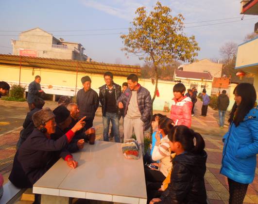 2013年12月12日,电子与信息工程系12级13级志愿者在系团总支书记石纭昊老师组织带领下走进安康市汉滨区建民敬老院,为老人们送去温暖。