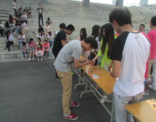 本次心理健康趣味运动会分为“心有灵犀一点通”,“穿针引线”,“盛水接力”,“六人七足跑”,“螃蟹运球”五个项目。比赛过程中,同学们团结一致、荣辱与共、努力拼搏的精神,极大地鼓舞在场每一位观众。本次活动的目的旨在促进学生彼此间的团结友爱,使学生在运动中寻找快乐,在快乐中感受幸福,在幸福中健康成长。