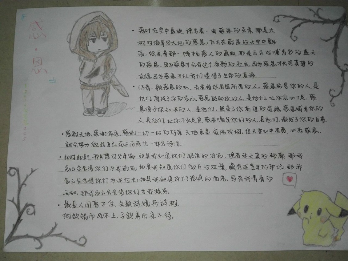欧美日韩国产在线团总支在2016级新生中开展“字字抄出感恩情”手抄报活动。此次活动是“感恩之行•传心之旅”系列活动之一。