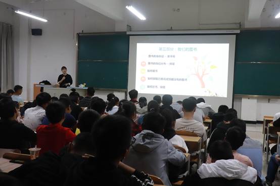 贾娟老师从图书馆的概况,校园一卡通的使用,到图书的借还规则一一讲解,通过贾老师深入细致的讲解,使新生们对图书馆的资源和服务有了比较全面系统的了解,也为以后学生更好的使用图书馆的资源打下了良好基础。
