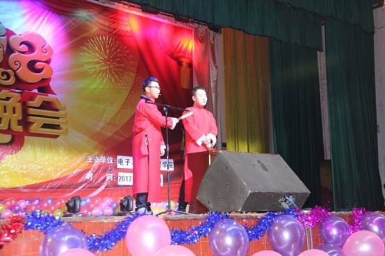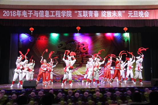 2017年12月21日晚,由电信学院主办的2018“互联青春,绽放未来”元旦晚会在江南大礼堂隆重举行。电信学院院领导,老师,2018级学生共同观看了本次文艺汇演。